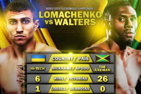 26 ноября в Лас-Вегасе (штат Невада, США) чемпион мира по версии WBO в первом легком весе 28-летний украинец Василий Ломаченко (6-1, 4КО) встретится с экс-чемпионом мира в полулегком весе 30-летним ямайцем Николасом Уолтерсом (26-0-1, 21КО).