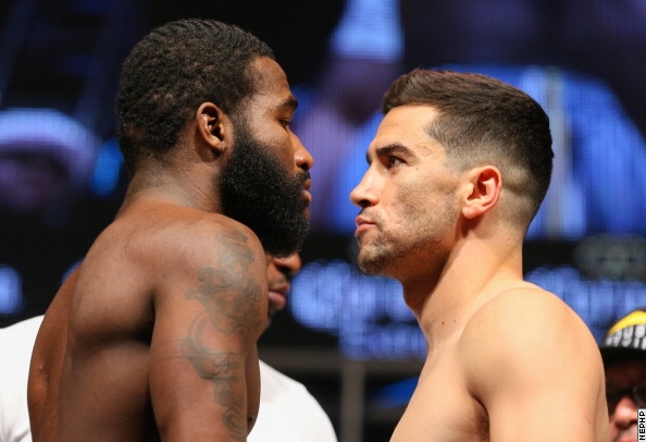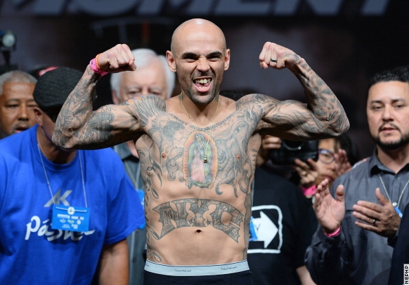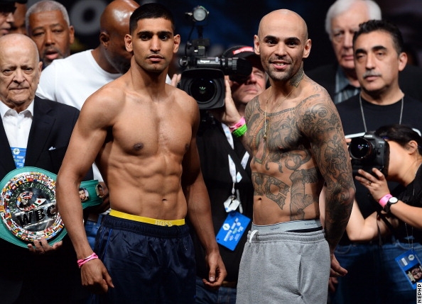 Вчера состоялась официальная процедура взвешивания участников PPV-шоу 3 мая в Лас-Вегасе (штат Невада, США), в главном бою которого лидер рейтинга P4P 37-летний американец Флойд Мейвезер-младший (66,2 кг / 146 фунтов) выйдет на ринг против чемпиона WBA в полусреднем весе 30-летнего аргентинца Маркоса Майданы (66,5 кг / 146,5 фунтов). Также в этот день экс-чемпион мира в трех весовых категориях 24-летний американец Эдриэн Бронер (63,5 кг / 140 фунтов) выйдет на ринг против 28-летнего американского боксера Карлоса Молины (62,8 кг / 138,5 фунтов), а британец Амир Хан (66,7 кг / 147 фунтов) встретится с Луисом Коллацо (66,7 кг / 147 фунтов). (Фото: BoxingScene.com)