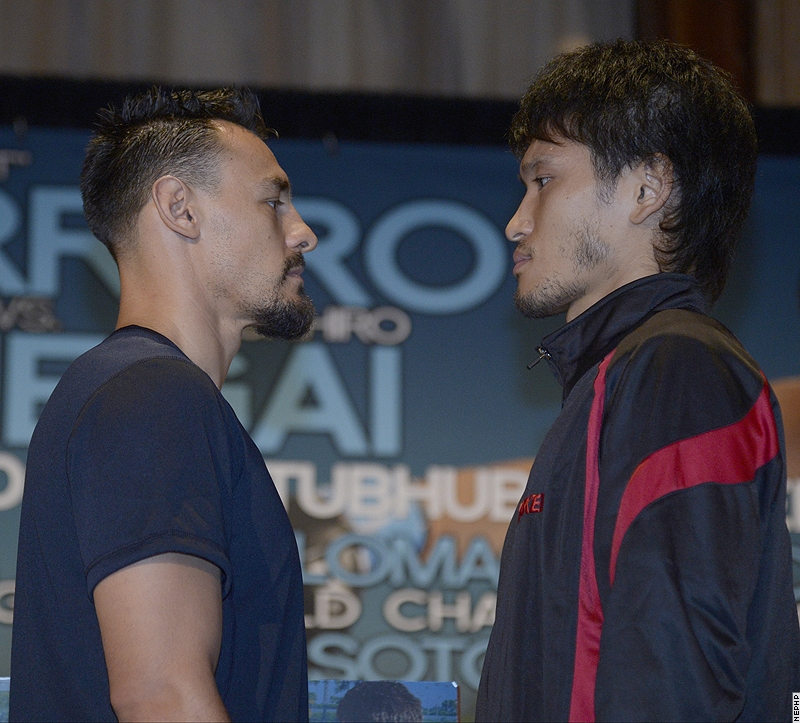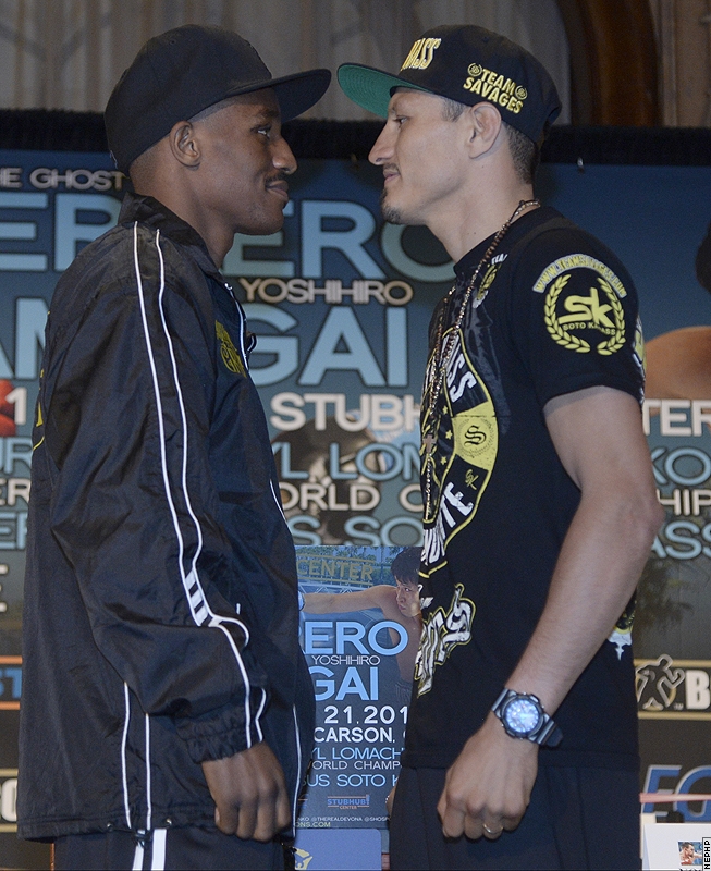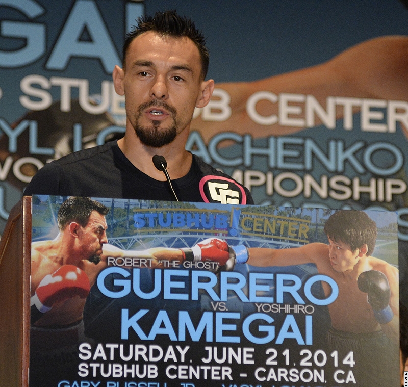 Вчера в США состоялась финальная пресс-конференция перед намеченным на 21 июня вечером бокса, в главном событии которого состоится поединок бывшего чемпиона мира в нескольких весовых категориях американца Роберта Герреро и японца Йошихиро Камегаи (24(21)-1-1).В другом бою шоу экс-чемпион мира в двух весовых категориях 27-летний американец Девон Александр встретится с 31-летним мексиканцем Хесусом Сото Карассом. В рамках этого же шоу состоится бой за вакантный титул WBO в полулегком весе между 26-летним украинцем Василием Ломаченко и 26-летним американцем Гари Расселлом-младшим. (Фото: Gene Blevins/Hoganphotos/BoxingScene.com)