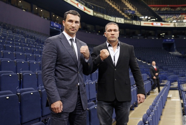 Вчера в Германии состоялась пресс-конференция перед намеченным на 6 сентября поединком между чемпионом мира по версиям IBF, WBO и WBA (Super) в супертяжелом весе 38-летним украинцем Владимиром Кличко и обязательным претендентом на титул IBF 33-летним болгарином Кубратом Пулевым. (Фото: BoxingScene.com)