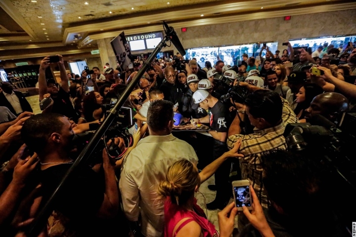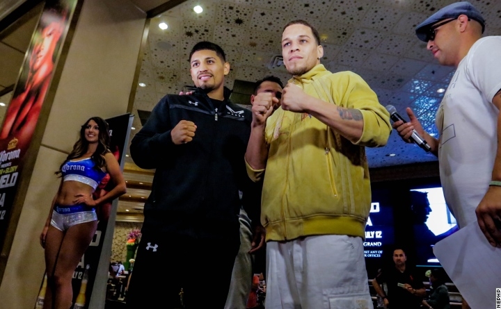 Вчера в отель MGM Grand в Лас-Вегасе (штат Невада, США) прибыли участники вечера бокса 12 июля, в главном поединке которого выйдут на ринг экс-чемпион мира в первом среднем весе 23-летний мексиканец Сауль «Канело» Альварес и чемпион мира по версии WBA (Regular) в этой весовой категории 31-летний кубинец Эрисланди Лара. (Фото: BoxingScene.com)