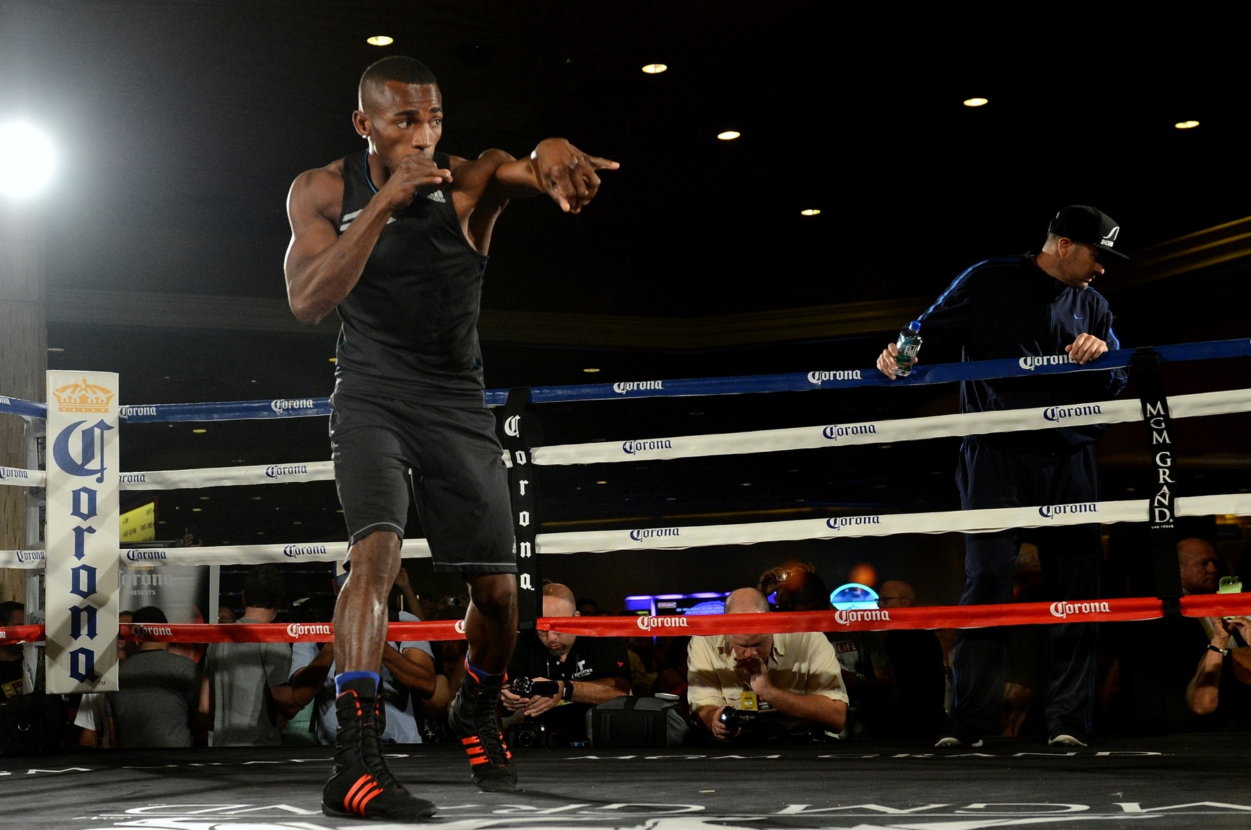Вчера в отель MGM Grand в Лас-Вегасе (штат Невада, США) состоялась открытая тренировка участников вечера бокса 12 июля, в главном поединке которого выйдут на ринг экс-чемпион мира в первом среднем весе 23-летний мексиканец Сауль «Канело» Альварес и чемпион мира по версии WBA (Regular) в этой весовой категории 31-летний кубинец Эрисланди Лара. (Фото: Naoki Fukuda / RingTV)