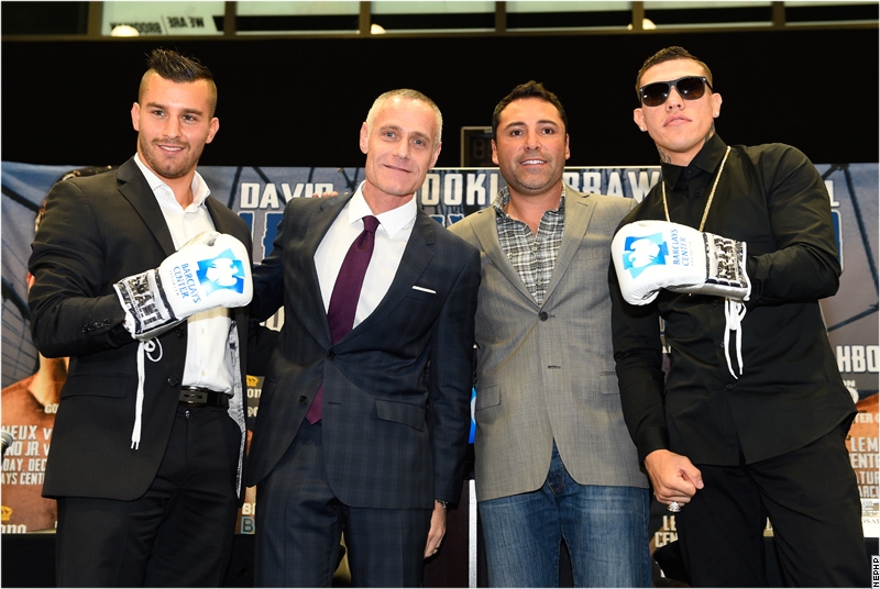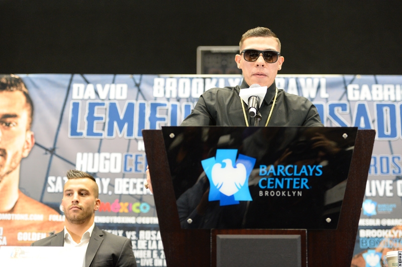 Вчера в США состоялась пресс-конференция перед намеченным на 6 декабря вечером бокса, в главном бою которого перспективный 25-летний средневес Давид Лемье (32(30)-2(1)-0) из Канады проведет бой с известным американским боксером Габриэлем Росадо (21(13)-8(3)-0). Этот бой состоится в Бруклине (Нью-Йорк, США). Напомним, что в своем прошлом бою Лемье одержал победу техническим нокаутом в третьем раунде над экс-претендентом на титул чемпиона мира 27-летним американцем Фернандо Герреро, а Росадо нокаутировал в шестом раунде американца Брайана Веру в поединке по правилам BKB (Big Knockout Boxing). (Фото: BoxingScene.com)
