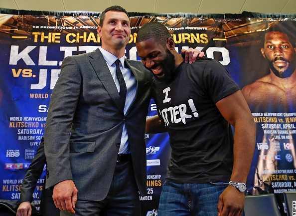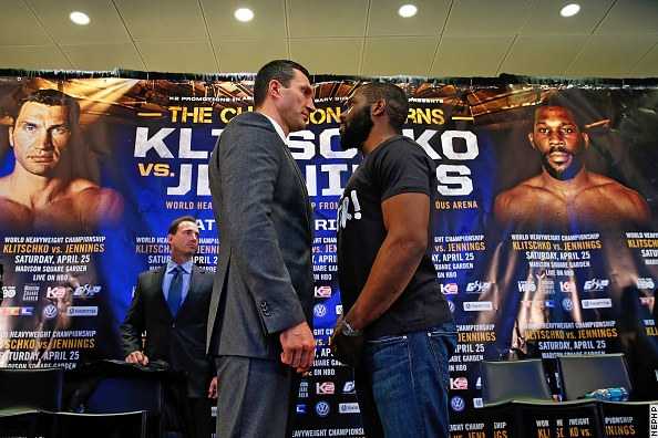 25 апреля в Нью-Йорке (США) на 21-тысячной арене Madison Square Garden состоится поединок между чемпионом мира по версиям WBA (Super), WBO и IBF в супертяжелом весе украинцем Владимиром Кличко и американцем Брайантом Дженнингсом. Бой будет транслировать телеканал HBO. Вчера состоялась посвященная этому событию пресс-конференция. (Фото: BoxingScene.com)