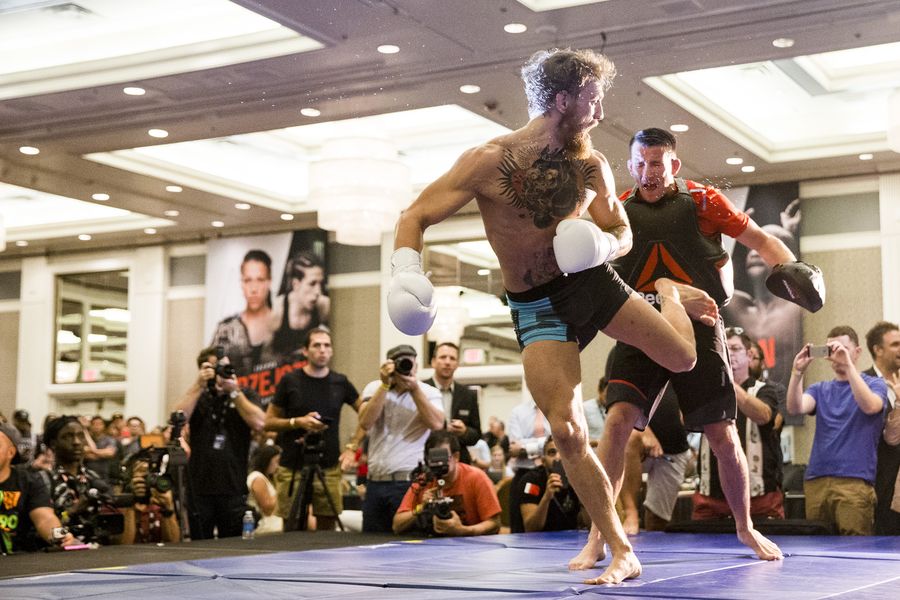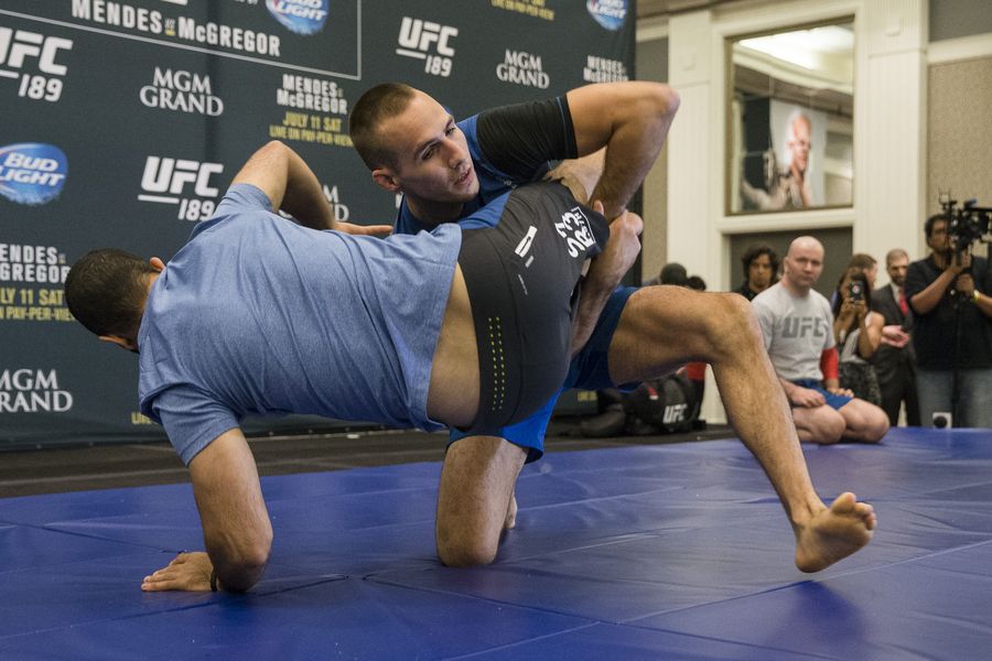 Представляем фото с открытой тренировки перед шоу UFC 189. В главном бою шоу Конор Макгрегор и Чед Мендес определят временного чемпиона UFC в полулегком весе. Кроме того, чемпион UFC в полусреднем весе Робби Лоулер будет защищать свой титул против Рори Макдональда.