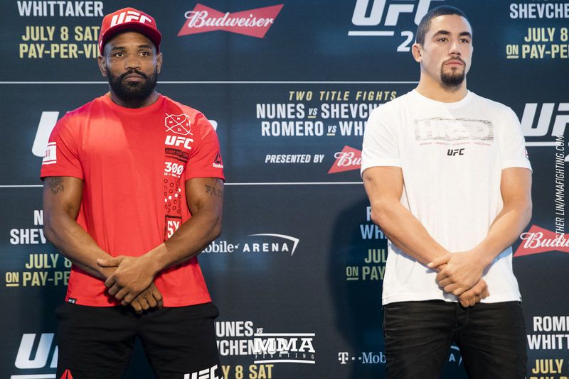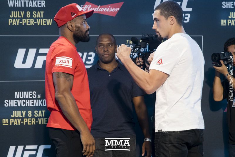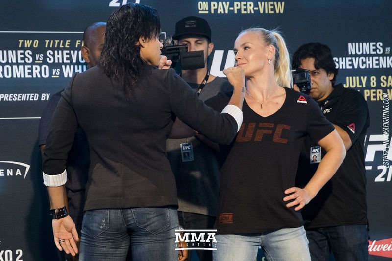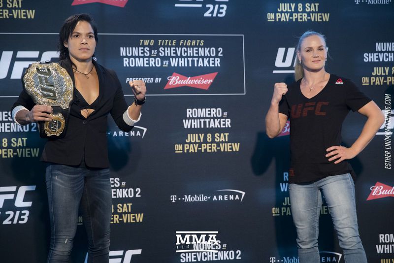 Представляем фото с пресс-конференции перед шоу UFC 213. Главным событием шоу станет бой чемпионки UFC в легчайшем весе Аманды Нуньес против Валентины Шевченко. Кроме того, Йоэль Ромеро и Роберт Уиттакер проведут поединок за титул временного чемпиона UFC в среднем весе.