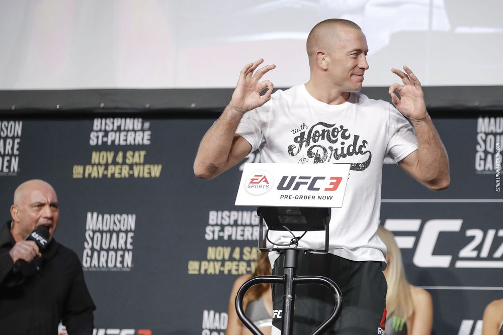 Представляем фото с церемонии взвешивания участников шоу UFC 217. В рамках шоу состоятся сразу три титульных поединка. В главном бою шоу чемпион UFC в среднем весе Майкл Биспинг встретится с экс-чемпионом в полусреднем весе Джорджем Сент-Пьером. Чемпион UFC в легчайшем весе Коди Гарбрандт проведет бой против экс-чемпиона в этом же весе Ти Джея Диллашоу. Чемпионка в минимальном весе Джоанна Енджейчик встретится с Роуз Намаюнас.