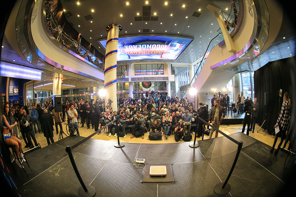 Сегодня в Нью-Йорке (США) в зале театра Madison Square Garden пройдет поединок, в котором встретятся 29-летний украинец Василий Ломаченко и 37-летний кубинец Гильермо Ригондо. На кону боя стоит титул Ломаченко в первом легком весе. На сегодняшней процедуре взвешивания боксеры успешно уложились в лимит 130 фунтов (59 кг). Ломаченко показал на весах 129 фунтов (58,5 кг), Ригондо — 128,4 фунта (58,2 кг). (Фото: Top Rank)