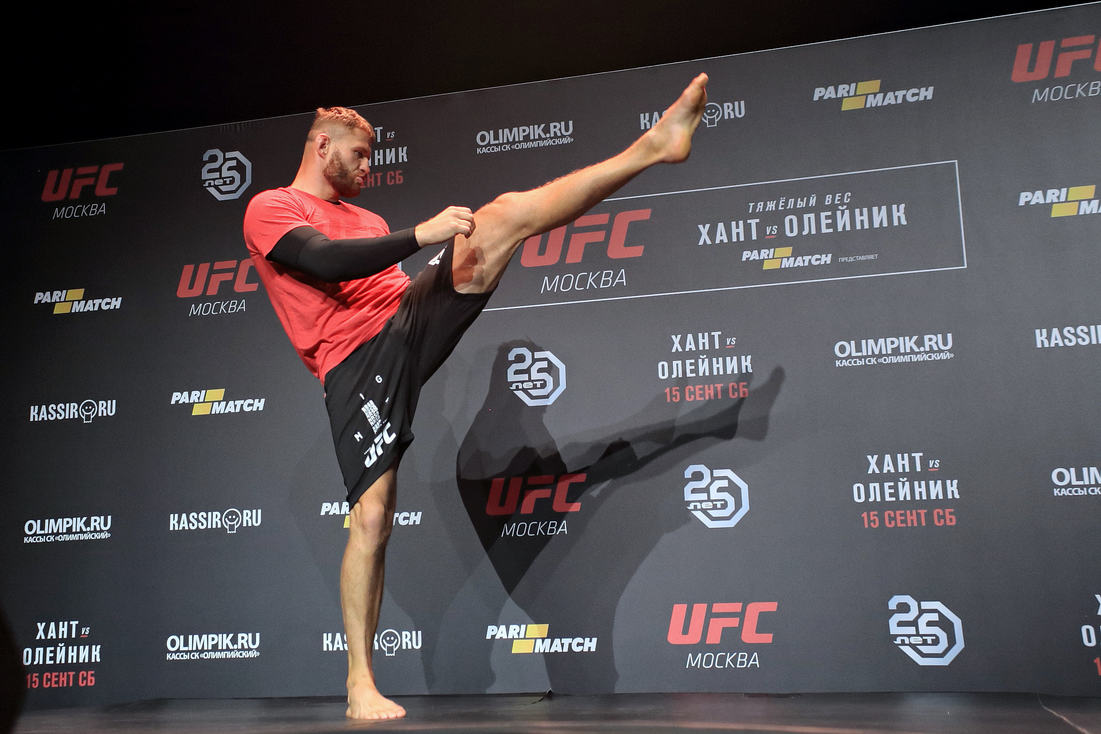 Вчера в Москве состоялась открытая тренировка бойцов первого турнира UFC в России. В главном бою новозеландец Марк Хант встретится с россиянином Алексеем Олейником. Ян Блахович будет сражаться с Никитой Крыловым, Андрей Орловский встретится с Шамилем Абдурахимовым, Тиаго Алвеш встретится с Алексеем Кунченко. (Фото: AllBoxing.Ru / Виктор Соколов)