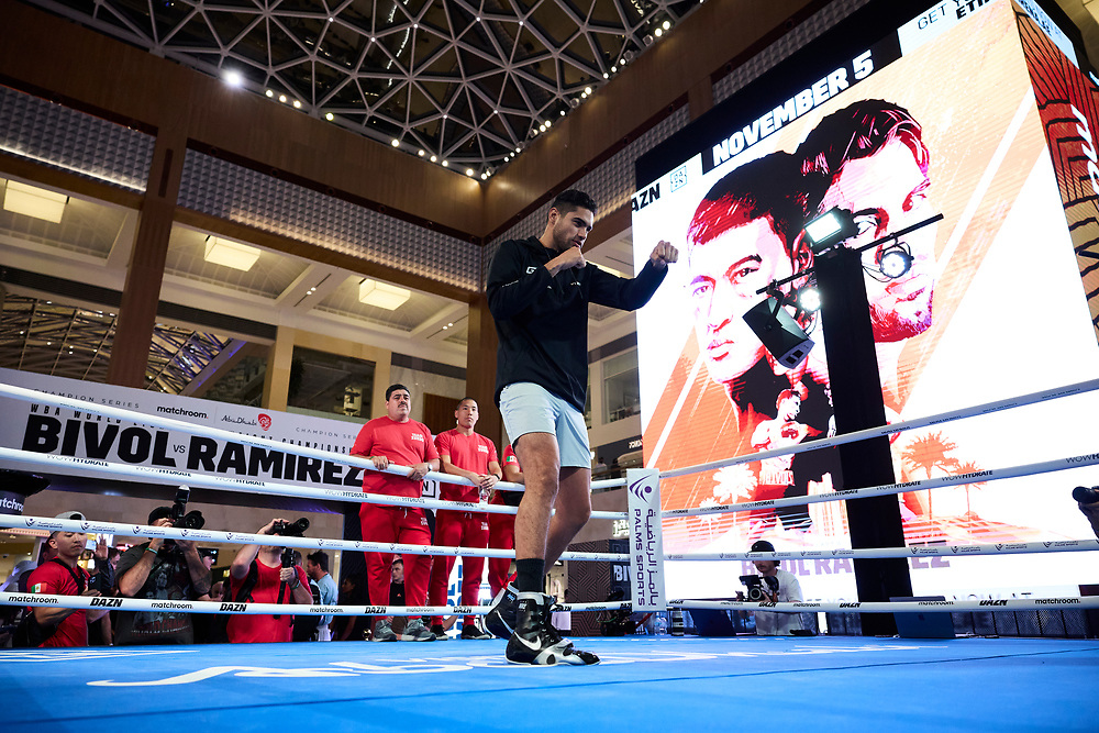 Вчера в Абу-Даби прошла открытая тренировка участников большого вечера бокса в Абу-Даби 5 ноября, главным событием которого станет поединок чемпиона WBA в полутяжелом весе Дмитрия Бивола против мексиканца Хильберто Рамиреса. (Фото: Mark Robinson Matchroom Boxing)