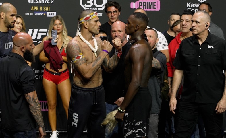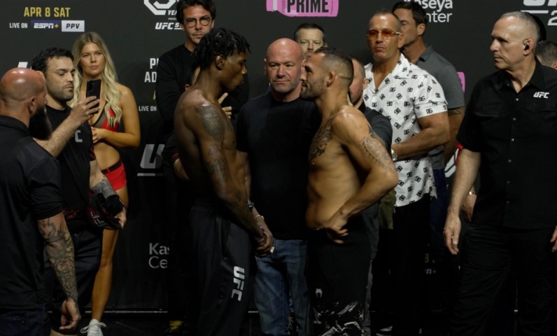Представляем фото с церемонии взвешивания участников шоу UFC 287. В главном бою чемпион UFC в среднем весе Алекс Перейра встретится с бывшим чемпионом Исраэлем Адесаньей. Во втором по важности бое шоу Гилберт Бернс встретится с Хорхе Масвидалем.