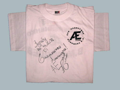А нашего победителя конкурса зовут Зураб. Он получает фирменную футболку с именным автографом Александра Емельяненко. Подзравляем!