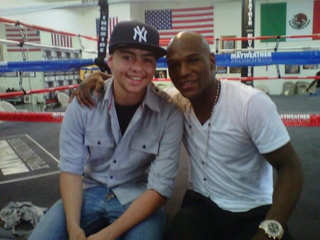 «Это полезный опыт, и я очень рад тому, что могу сделать доброе дело для Армандо, — цитирует Мейвезера The Sweet Science. — Он очень приятный молодой человек, и я хотел бы отметить его силу духа и поздравить его с окончанием школы». 17-летний Армандо Каррал, приехавший в гости к Мейвезеру со своей матерью и старшей сестрой, был в восторге от встречи с кумиром. «Я очень рад встрече с чемпионом Флойдом Мейвезером, — сказал Армандо. — Я очень большой поклонник этого великолепного боксера, и восхищаюсь его работоспособностью и верой в себя. Я тоже верю в свои силы». (Фото: Twitter.com/FloydMayweather)