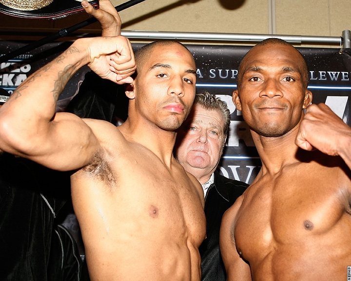 Вчера в Окленде (США) состоялась официальная процедура взвешивания участников сегодняшнего боксерского вечера, в главном поединке которого чемпион WBA во втором среднем весе Андре Уорд проведет защиту своего титула против австралийца Сакио Бики. Оба боксера с первой попытки точно уложились в лимит второго среднего веса, кажды потянув на весах 76,2 кг (168 фунтов). (Фото Boxingscene.com)