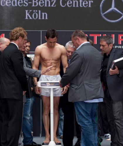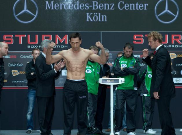 Cегодня в Кёльне (Германия) состоялась официальная церемония участников завтрашнего боя: суперчемпиона WBA в среднем весе, немца боснийского происхождения Феликса Штурма и чемпиона Европы, британца Мэтью Маклина. Оба спортсмена уложились в рамки весовой категории до 72,5 кг (напомним, что Штурму в течение 12 недель пришлось избавляться от 14 кг). На ринг в Кёльне выйдет также сирийский супертяжеловес Мануэль Чарр, противником его будет Дэнни Уильямс.