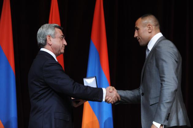 Президент Армении Серж Саргсян наградил всемирно известных боксеров армянского происхождения Артура Абрахама (Аветика Абраамяна) и Вика (Вахтанга) Дарчиняна медалью «За заслуги перед отечеством» первой степени. Награды спортсмены получили из рук Саргсяна накануне на приеме для священнослужителей Армянской Апостольской Церкви, представителей интеллигенции и спортивной сферы в честь 20-летия независимости республики. Абрахам и Дарчинян награждены медалями за вклад в развитие физической культуры и спорта, значительные успехи на международной спортивной арене и блестящие спортивные достижения.