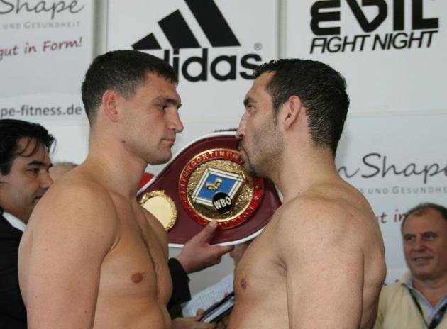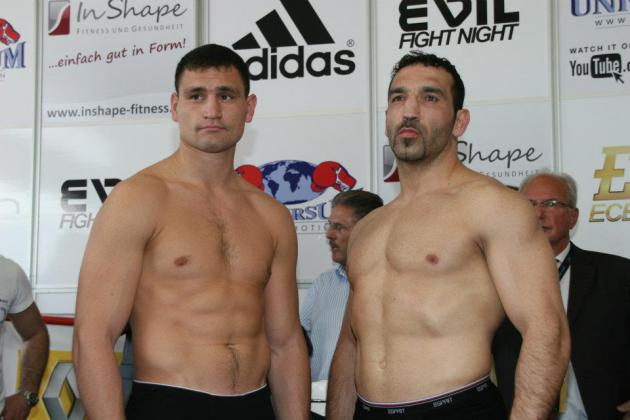 Сегодня в Германии состоялась процедура взвешивания перед намеченным на завтра поединком, в котором чемпион Европы в первом тяжелом весе Александр Алексеев и экс-чемпион мира в первом тяжелом весе немец Фират Арслан поспорят за принадлежащий Алексееву титул. Алексеев показал на весах 90,0 кг, Арслан — 90,2 кг. (Фото: Künzel)