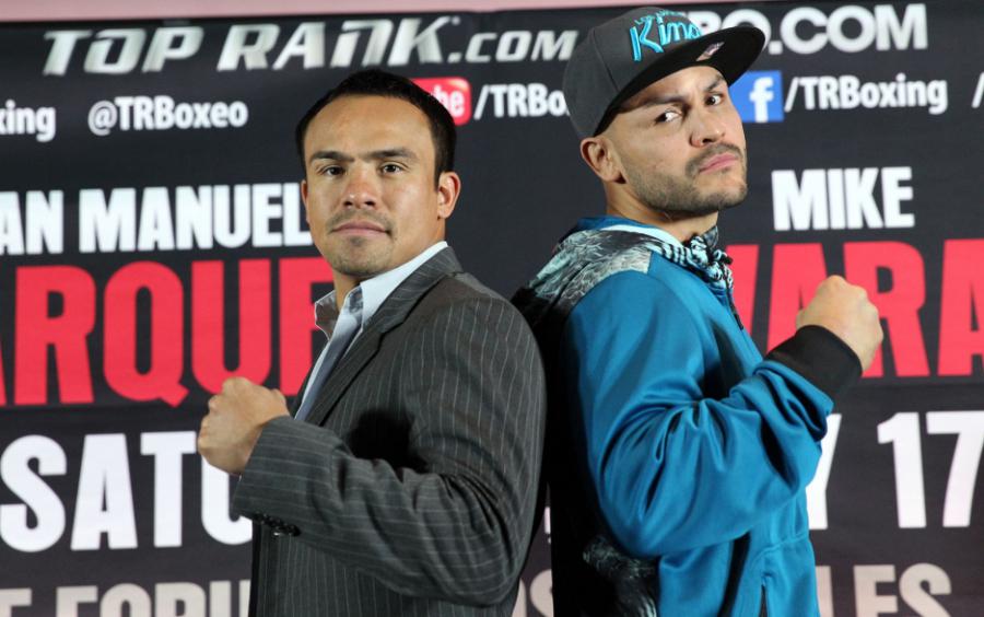 Вчера в США состоялась пресс-конференция перед намеченным на 17 мая поединком, в котором экс-чемпион мира в четырех весовых категориях 40-летний мексиканец Хуан Мануэль Маркес выйдет на ринг против экс-чемпиона мира в первом полусреднем весе 33-летнего американца Майка Альварадо.