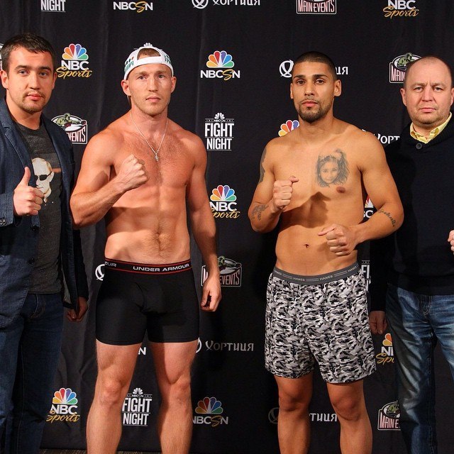 Стали известны результаты взвешивания. 28-летний Дмитрий Михайленко показал на весах 69,2 кг. Его американский соперник и ровесник Рональд Крус оказался на 200 граммов тяжелее и потянул на 69,4 кг. 29-летний Василий Лепихин без проблем уложился в рамки полутяжелого веса, показав на взвешивании 79,4 кг. Его визави, 28-летний бразилец Джексон Жуниор Дос Сантос показал перевес верхнего лимита – 79,6 кг.