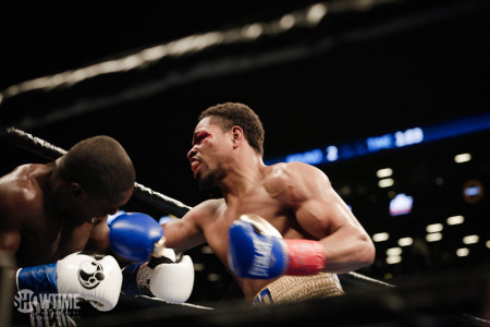 Оба бойца стремились к победе, оба получили рассечения, которые сделали бой более откровенным и открытым. Портер был активнее и точнее, отправив Берто в нокдаун в третьем раунде размашистым ударом. Берто работал на контратаках, но Портер буквально подавлял его своей активностью и вбрасывал гораздо больше ударов. В девятом раунде Портер отправил Берто на настил ринга, тот сумел подняться, но после добивания бой был остановлен. (Фото: Showtime)