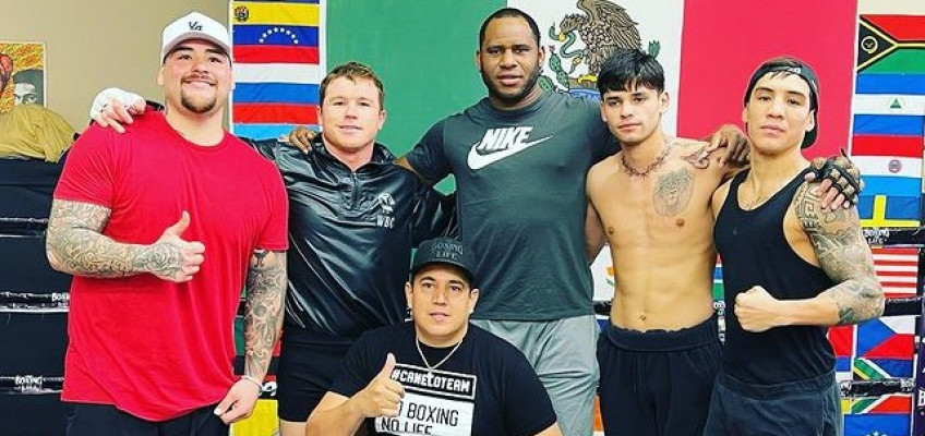 Eddy Reynoso has a serious stable - Canelo Alvarez, Andy Ruiz Jr and Ryan Garcia all in the gym together today…