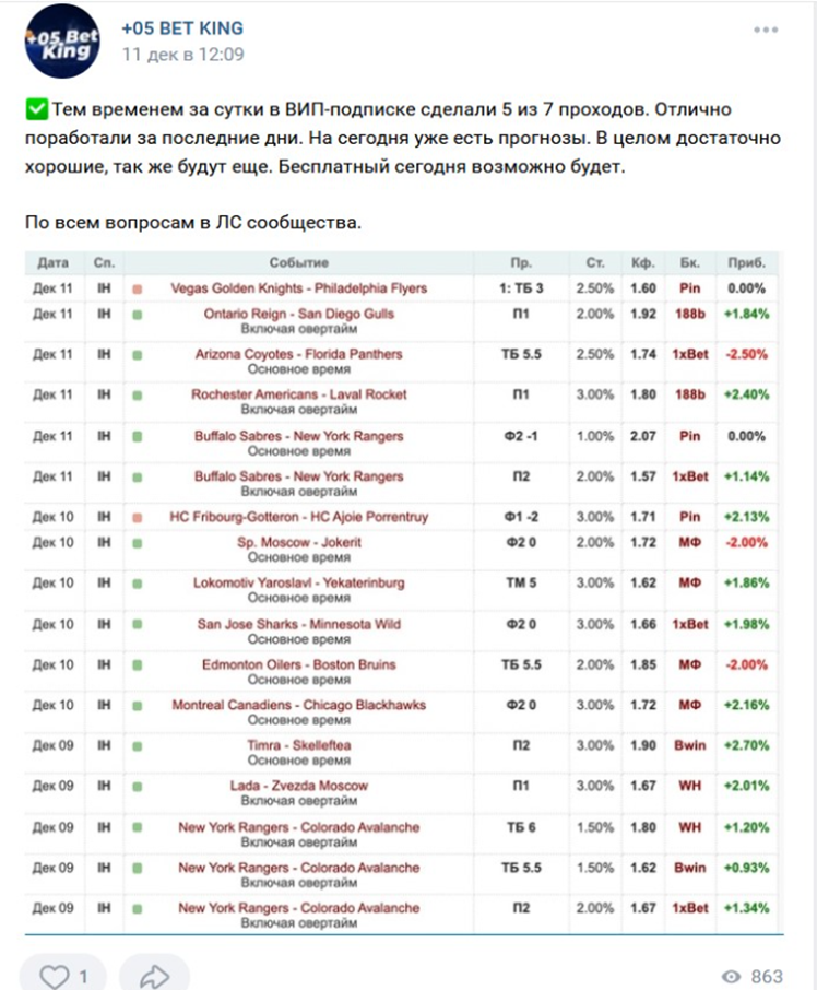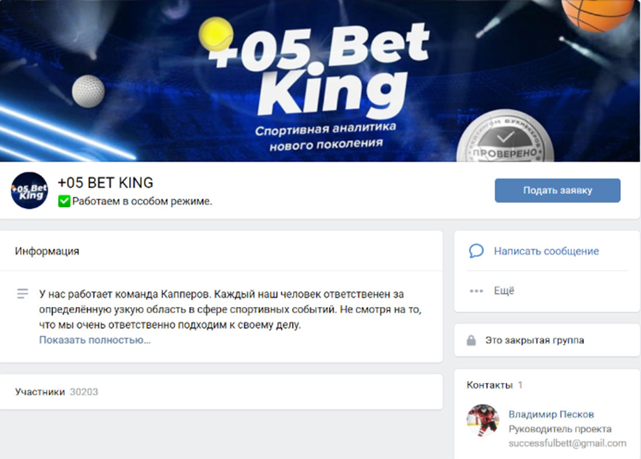 Деятельность проекта 05 Bet King, реальная проходимость прогнозов аналитика Владимира Пескова