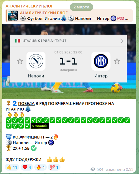Аналитический блог – это сообщество в Телеграм с бесплатными спортивными прогнозами на различные виды спорта, включая футбол, хоккей и теннис. Он работает сам, без команды. Основной каппер – Arturik (@arturikbet). В паблике активно рекламируются сомнительные БК и мошеннические схемы. Кроме того, регулярно меняются названия и администраторы, что свидетельствует о попытках скрыть негативные отзывы. Мы разберемся, какие услуги предлагает подписчикам прогнозист, и стоит ли с ним работать.