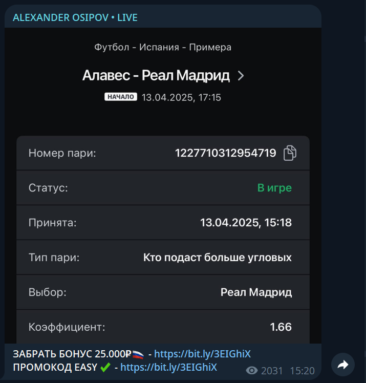 Alexander Osipov Live: отзывы о Телеграмм канале каппера Александра Осипова (Alexander osipovtg) и какие услуги он предлагает своим клиентам