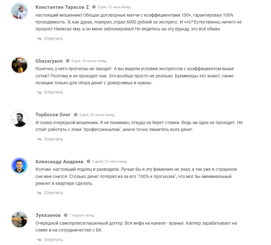 В качестве гарантий прогнозист публиковал на канале положительные видео отзывы клиентов. Это стандартная схема мошенничества. Большинство таких роликов закупалось на специализированных площадках.