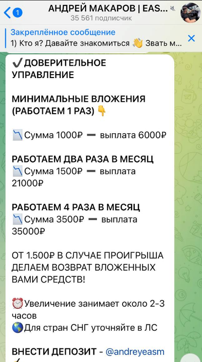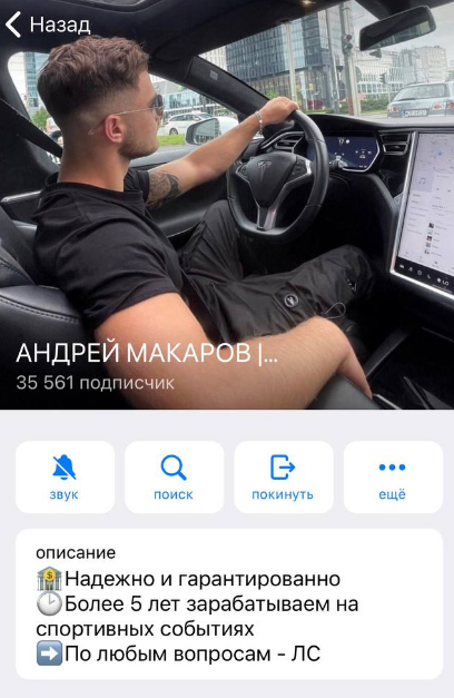 Отзывы о проекте «Андрей Макаров» в Телеграмм: проходимость прогнозов на спорт капера Andreyeasm