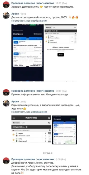 Для увеличения доверия доверия клиентов, Арсен публиковал скрины переписки с создателями проекта Проверка доггеров, но они легко могли оказаться фейками. Во всяком случае, у этого паблика нет положительной репутации.