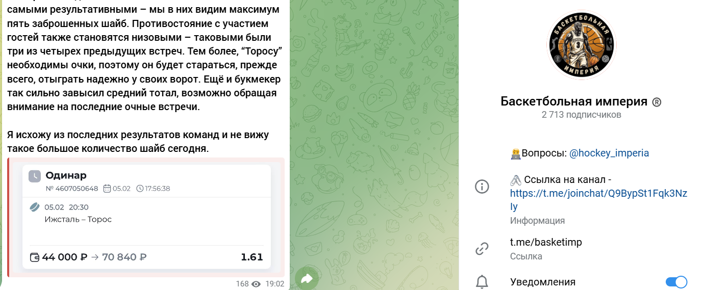 Каппер Роман: обзор ТГ канала Баскетбольная империя, статистика проходимости прогнозов и отзывы клиентов