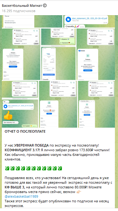 Отзывы о телеграм-канале Баскетбольный Магнат: реальный процент проходимости прогнозов каппера alexbasketball1989