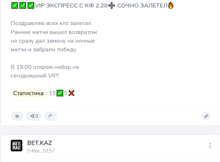 Анализ Телеграм показал, что канал Bet Kaz не несет пользы игрокам. Отметим минусы: