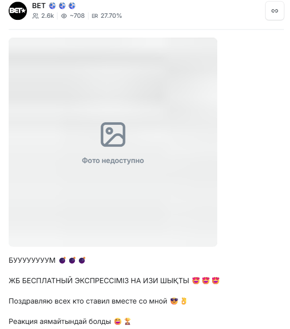 Также проверка выявила такие недостатки Телеграм-канала Бет: