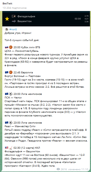 Отзывы на телеграмм-канал BetTwit: виды контента и уровень аналитики к матчам
