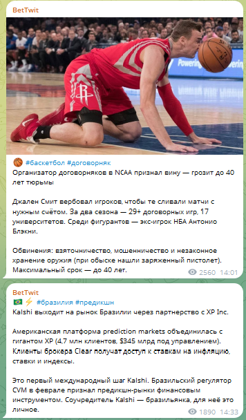 Паблик в telegram BetTwit создан накануне марта 2026 года неизвестным прогнозистом. Вернее так: каппером он по существу не является, поскольку не публикует скрины пари и не дает аналитику матчей. Он всего лишь освещает спортивные события и изредка выкладывает свои мысли на их счет.