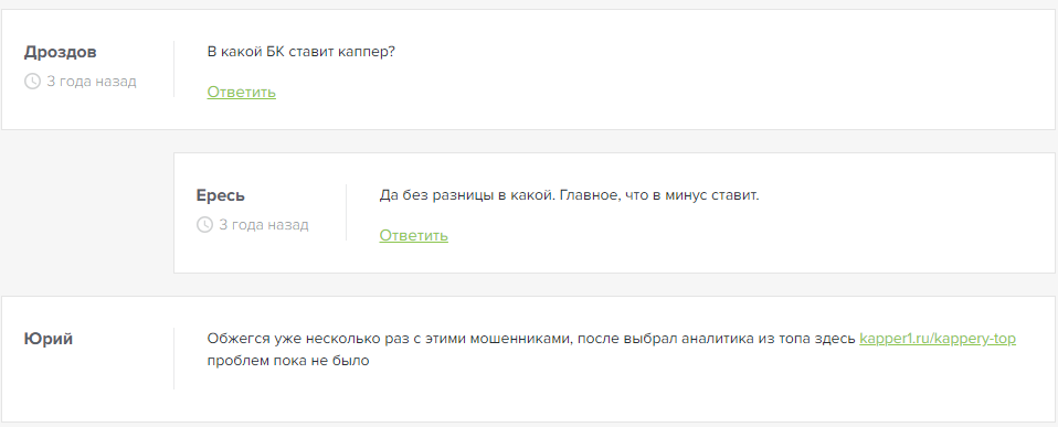 - Отсутствие достоверных отзывов от реальных клиентов каппера.