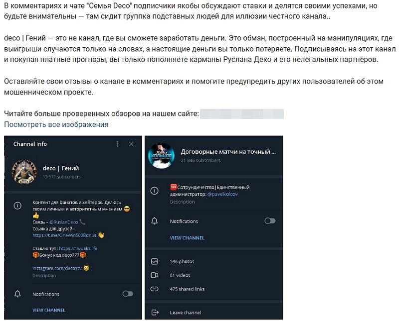 Вскоре после рекламы @RuslanDeco админ Биг Баллер скрылся, успев развести аудиторию призывами подписаться на бот GPT Football и прочие проекты, на которые жалуются игроки. Легенды о проходимости прогнозов в 100 % не выдерживают критики, ведь до сих пор никто не создал универсальный софт для «грабежа букмекеров».