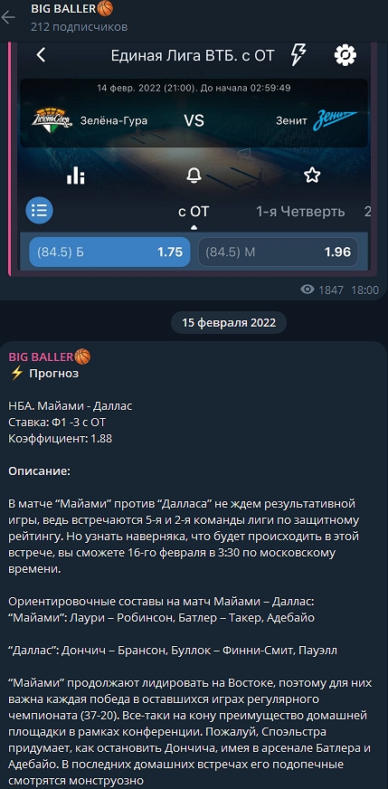 Биг Баллер — телеграм-канал с аналитикой на баскетбол и бейсбол, автор которого бросил аудиторию после полутора лет развода. Прогнозы в постоплату и ставочные марафоны для быстрого «разгона банка» — главные уловки анонима для обогащения на подписчиках, но только ими набор сомнительных предложений не ограничивался. Подробнее о них в разоблачении @bigballer_alert, сидевшего в Telegram с 23.12.2021 по 22.06.2023.