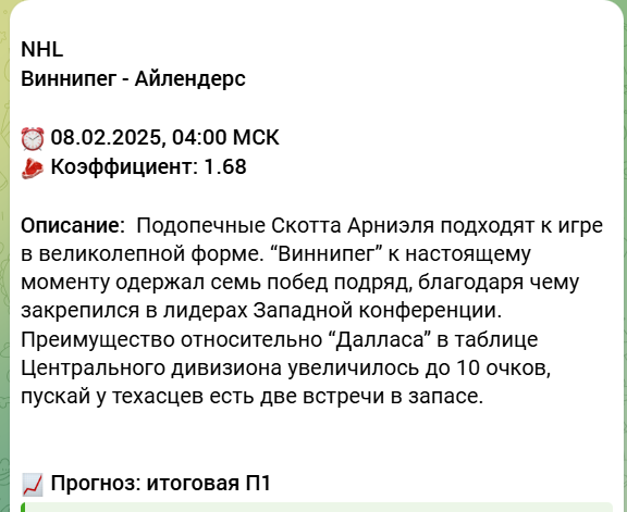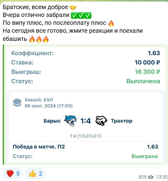 В ТГ публикуются только прогнозы на спортивные матчи, нет рекламы букмекерских контор и навязчивых советов, где и какую сумму ставить. Решение о распределении банка каждый игрок принимает индивидуально. Админ не заинтересован в прибыли с реферальной программы.
