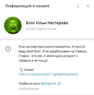 Деятельность телеграмм канала Блог Ильи Нестерова и сообщества ВКонтакте INBET | Прогнозы на спорт