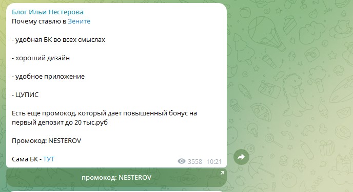 В телеграмм тот же самый контент, что и во ВКонтакте. Помимо этого там можно встретить рекламу букмекерской конторы и различных сомнительных проектов.