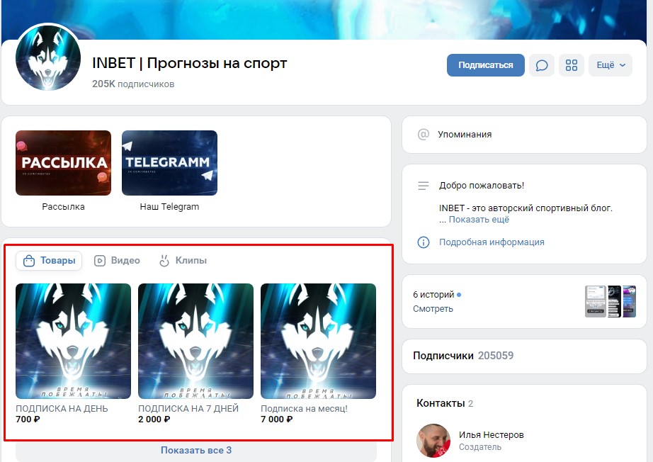 Проводя анализ каперских сообществ, определенно стоит затронуть деятельность проекта Блог Ильи Нестерова, который также работает под названием INBET | Прогнозы на спорт. Капер предлагает многотысячной аудитории бесплатные сигналы, а также платные прогнозы для ставок на спортивные матчи.
