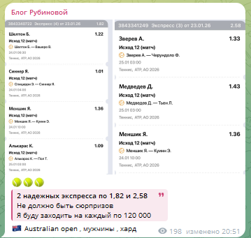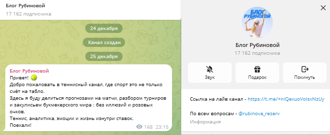 Сообщество Александры Рубиновой создано 25 декабря 2025 года и уже состоит из 17 000 подписчиков. Автор собирается делится в нем прогнозами на теннис и делать разбор новостей беттинга.