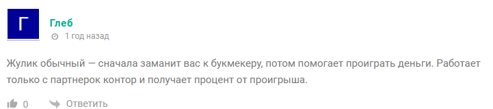 Нашли несколько жалоб на мошенничество. Отзывы подтверждают, что Алексей заинтересован в доходе от сотрудничества с конторами, и всеми способами завлекает игроков в свою схему, где помогает проиграть деньги, а сам получает процент. Не советуют с ним работать.
