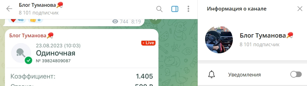 Telegram Блог Туманова: информация о каппере Алексее, статистика проходимости ставок и отзывы подписчиков проекта