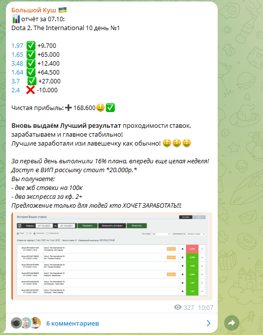 Телеграм-канал Большой куш: статистика, проходимость ставок, отзывы пользователей