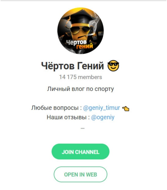 Каппер Тимур с личным профилем @geniy_timur ведет авторский телеграмм-канал с амбициозным и креативным названием Чертов гений. Специализируется сразу на трех видах спорта – футбол, теннис и хоккей. Ежедневно делится бесплатными ставками, а также предлагает платные услуги. Рассмотрим подробнее данный проект и решим, оправдывает ли он свое название.