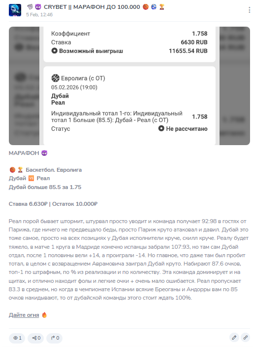 Результаты анализа и отзывы клиентов о ТГ-канале «CRYBET | Марафон до 100000»